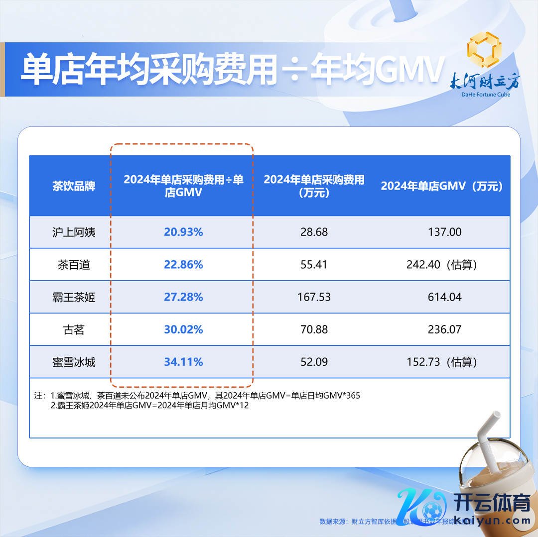 单店年均采购用度数据自大,2024年霸王茶姬以167.53万元的采购用度居首;古茗次之,采购用度为70.88万元;茶百说念与蜜雪冰城较为接近,分裂为55.41万元和52.09万元;沪上大姨的单店采购用度最低,为28.68万元。