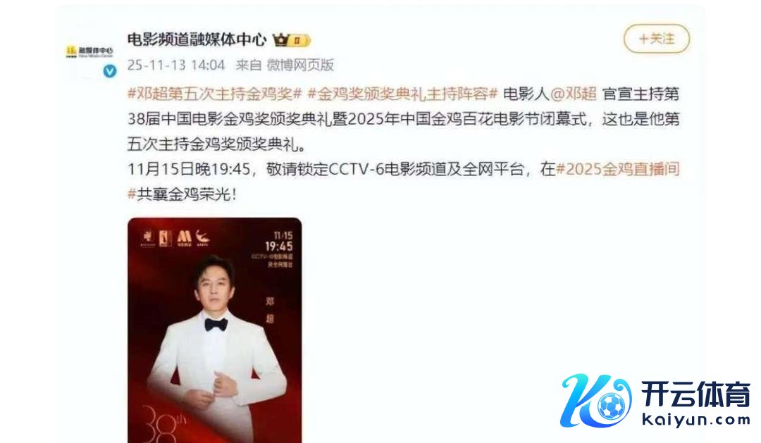中国电影频说念融媒体中心认真官宣,邓超将担任第38届中国电影金鸡奖受奖庆典的主理东说念主。