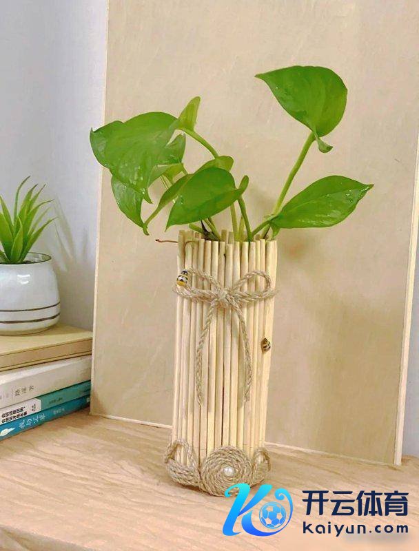 还有我家阳台阿谁装绿萝的花瓶,是用矿泉水瓶加旧筷子改的——把矿泉水瓶上半部分剪掉,用热熔胶把筷子粘在瓶身外面,再缠了圈麻绳,插几支绿萝进去,比我之前买的玻璃花瓶还结子,我妈每天浇水都要夸:“这瓶子比买的还经用,摔都摔不碎。”